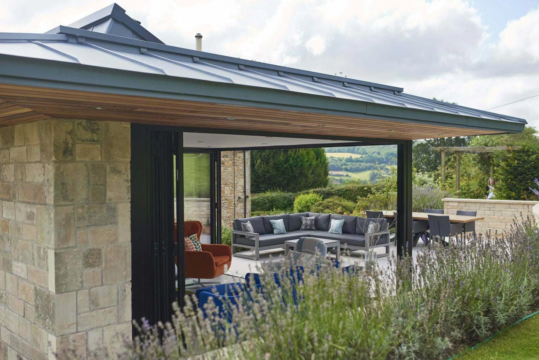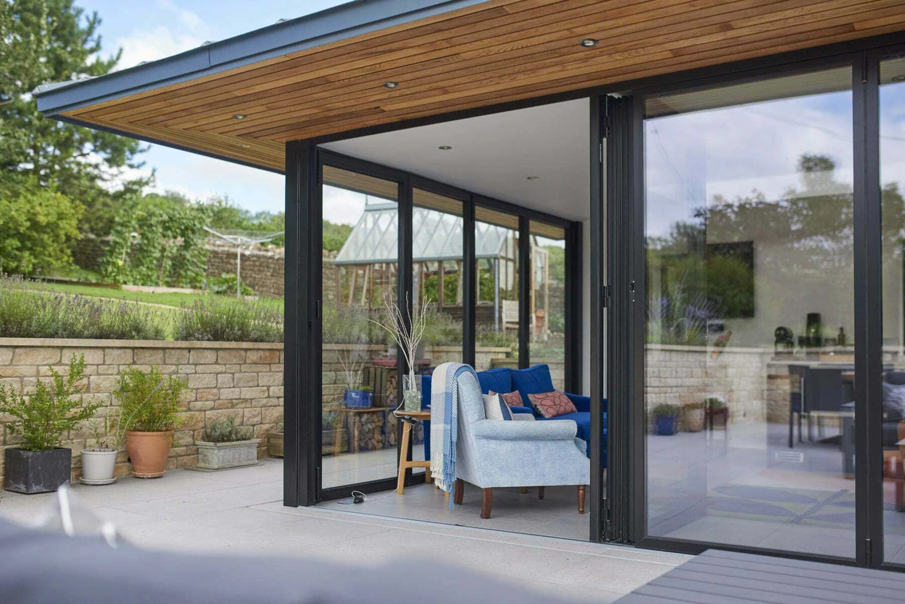- Glazing: Triple-column aluminium sliding doors with flush thresholds